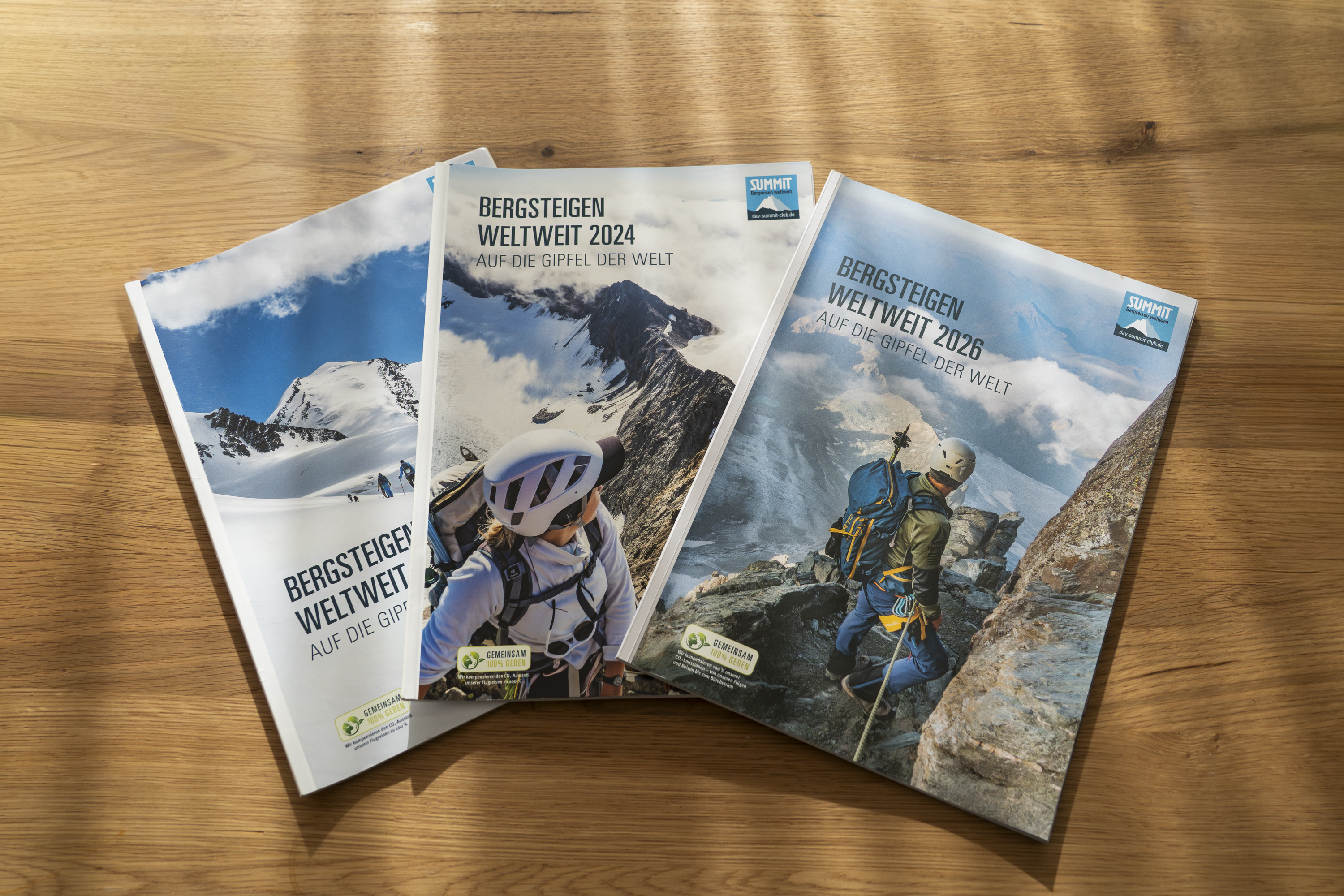 Mit rund 12.000 Teilnehmern pro Jahr gehört der DAV Summit Club zu den größten Bergreiseunternehmen im deutschsprachigen Raum. Ich bin stolz, dass es zum dritten Mal ein Foto von mir auf das Cover ihres Jahreskatalogs „Bergsteigen Weltweit“ (Auflage: 30.000 Stück) geschafft hat.