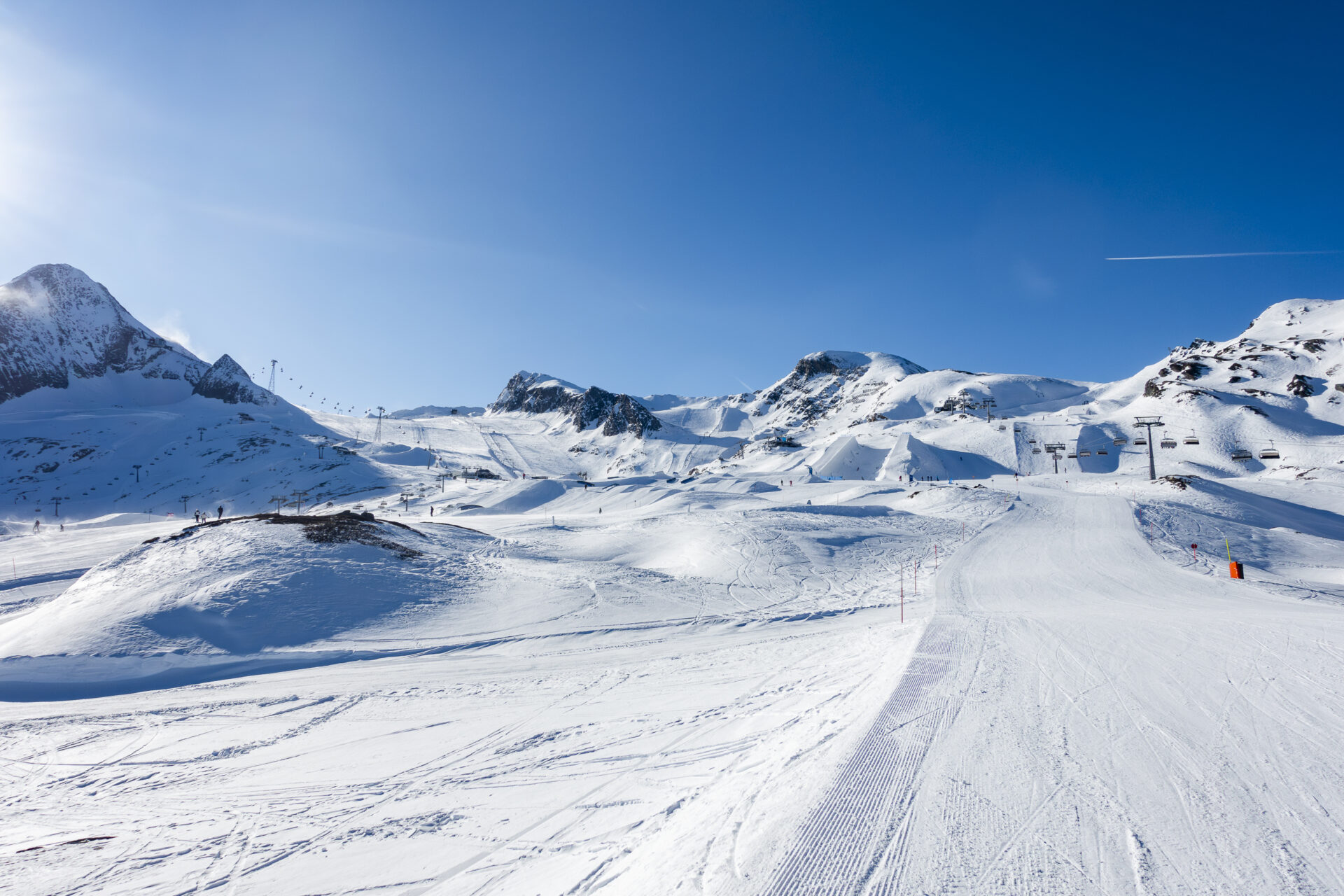 - Skifahren am Gletscher: Breite, bestens präparierte Pisten laden zur Extra-Einheit ein.